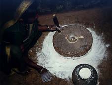 In another village, women gathered in one house where the verandah was quite large to accommodate 40 to S0 women. Before we started the meeting, the lady from the house said: “You better choose another house for the meeting. I have to get up early in the morning.” This was given as an excuse for not participating in the meeting, as she was afraid. We shifted to a nearby house and started discussion. While discussing, we sang some grindmill songs: